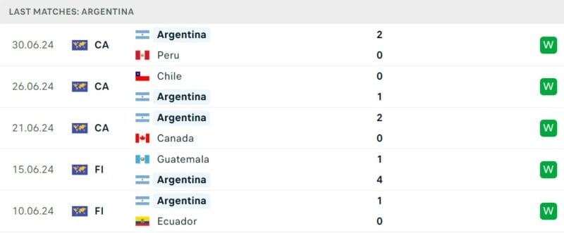 3 chiến thắng tại vòng bảng Copa America 2024 nối dài chuỗi trận toàn thắng của Argentina lên con số 8 trận. Nhà đương kim vô địch thế giới đang trình diễn phong độ cực cao dưới sự dẫn dắt của HLV Lionel Scaloni.