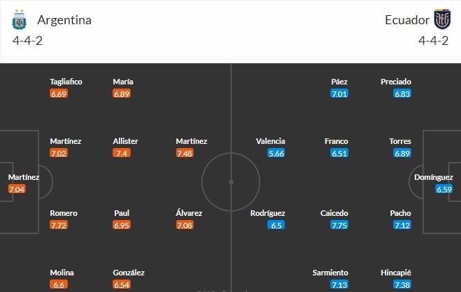 - Argentina: Emi Martinez; Tagliafico, Lisandro Martinez, Romero, Molina; Di Maria, Mac Allister, De Paul, Gonzalez; Lautaro Martinez, Alvarez.