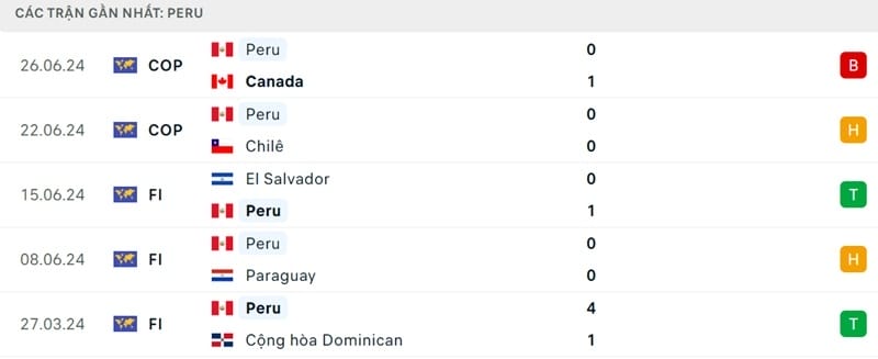 5 trận gần nhất chứng kiến Peru thắng 2, hòa 2 và thua 1. Họ cũng không ghi được bàn nào trong 4 lần gặp Argentina gần đây nhất.