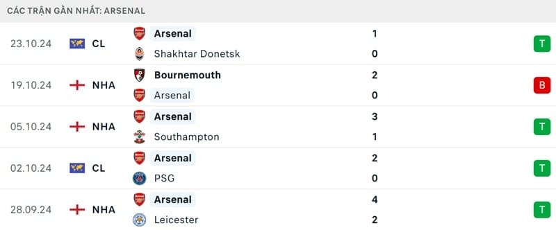 9/10 trận sân nhà gần nhất của Arsenal kết thúc bằng chiến thắng. 6 trận trên mọi đấu trường chứng kiến thầy trò Arteta thắng 5 và thua 1.
