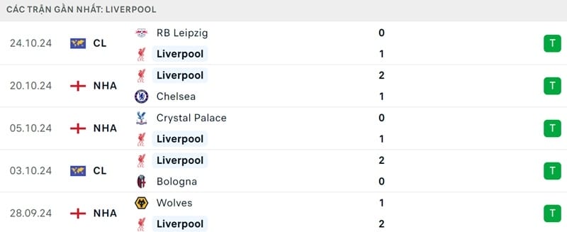 Phong độ Liverpool