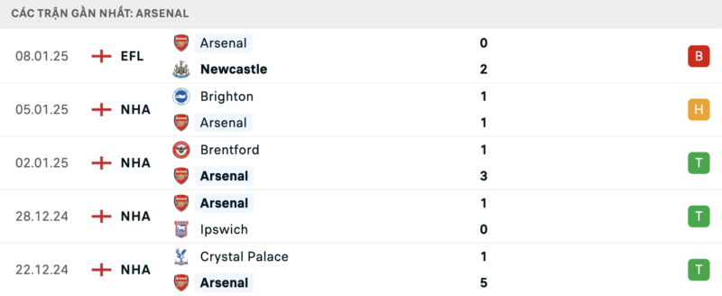 Arsenal đang có dấu hiệu hụt hơi khi không thắng trong 2 trận gần nhất. Họ bị cầm hòa bởi Brighton tại Ngoại hạng Anh và thua Newcastle tại trận bán kết lượt đi Carabao Cup.