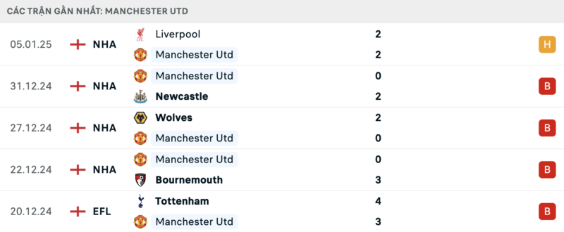Man United đã trải qua 5 trận đấu không thắng trên mọi đấu trường. Trong đó mỗi trận họ thủng lưới ít nhất 2 bàn.
