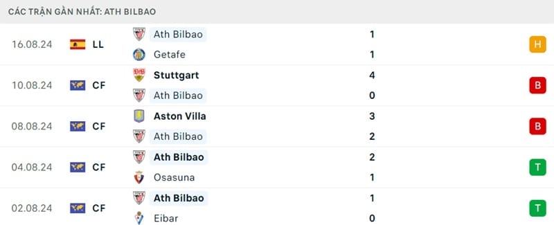 Bilbao không thắng trong 3 lần ra sân gần nhất. Trước đó, thầy trò HLV Ernesto Valverde đánh bại 2 CLB Tây Ban Nha bao gồm Eibar và Osasuna trong giai đoạn tiền mùa giải.