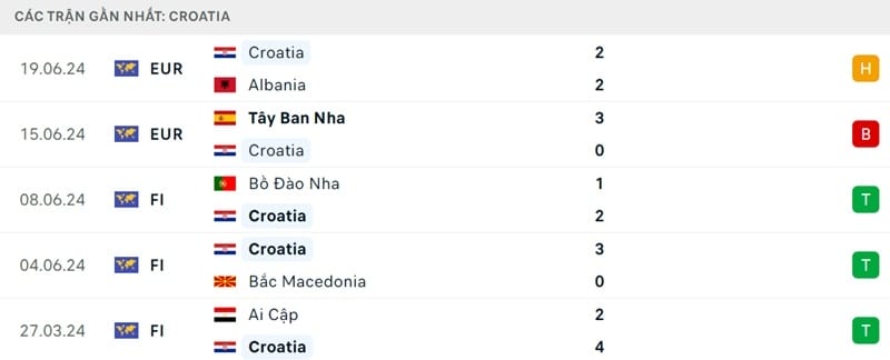 5 trận gần nhất, thầy trò HLV Zlatko Dalic thắng 3, hòa 1 và thua 1. 1/3 chiến thắng đó đến từ lần đánh bại Bồ Đào Nha với tỷ số 2-1. Dù vậy, 3 trận thắng của Croatia đều là những trận đấu không quan trọng.