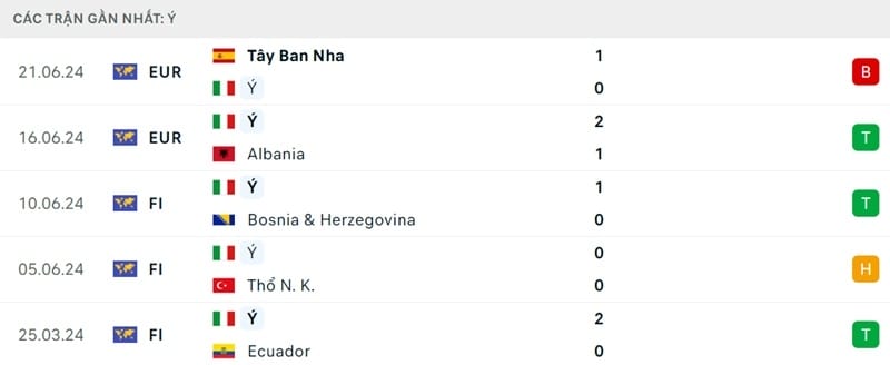 3 thắng, 1 hòa và 1 thất bại là thành tích trong 5 trận gần nhất của Italia. Đoàn quân của Luciano Spalletti đang chơi thiếu ổn định.