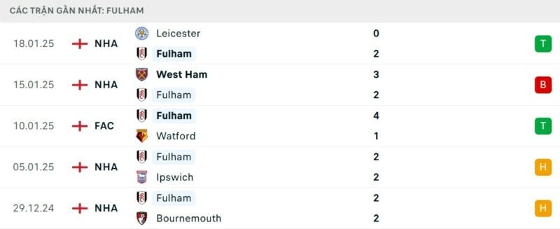Đáng chú ý là Fulham đã hòa cả 4 trận sân nhà gần nhất. Kết quả này có thể sẽ tiếp tục lặp lại ở trận đấu tới.