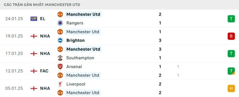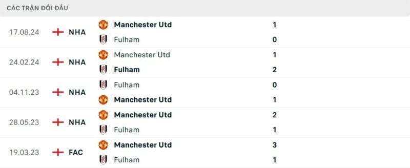 Kết quả đối đầu các trận gần đây nhất của Fulham vs Man United