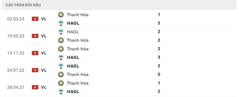 Thành tích đối đầu HAGL vs Thanh Hóa