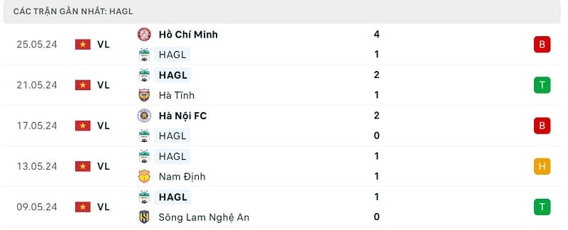 Phong độ gần đây HAGL vs Thanh Hóa
