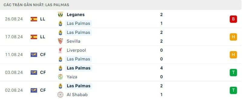Las Palmas chỉ có 2 chiến thắng từ giai đoạn giao hữu hè đến hiện tại, nhưng chưa có thắng lợi nào ở các trận đấu chính thức.