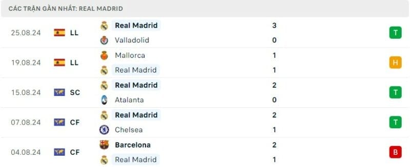 Phong độ Real Madrid