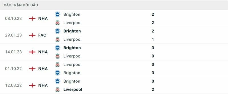 Nhưng cả 2 chiến thắng đó đều diễn ra trên sân nhà, đây là một yếu tố quan trọng khi Seagulls đã thua 5 trong 6 trận sân khách gần nhất (thắng 1), 4 trong số đó họ không ghi được bàn nào. Trước tất cả các yếu tố bất lợi khác, vẫn có một thống kê để Brighton vin vào khi đội bóng này đã tránh được thất bại trong 4 trận đối đầu gần đây nhất trước Liverpool (2 thắng, 2 hòa).