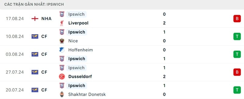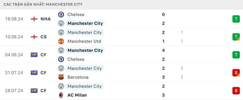 5 trận ra sân gần nhất, nhà ĐKVĐ Ngoại hạng Anh thắng 3 và thua 2. 3 chiến thắng đó diễn ra liên tiếp khi họ 2 lần đánh bại Chelsea và 1 lần vượt qua Man Utd. Bước vào mùa giải mới, đoàn quân của Guardiola đang chơi tốt và hứa hẹn duy trì điều đó khi chạm trán tân binh Ipswich Town.