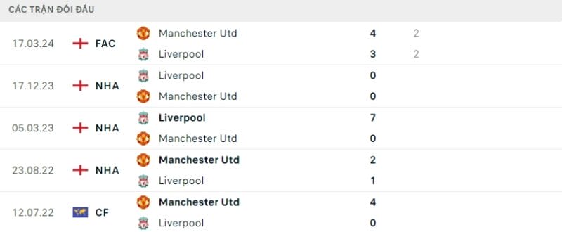 Thành tích đối đầu Man United vs Liverpool