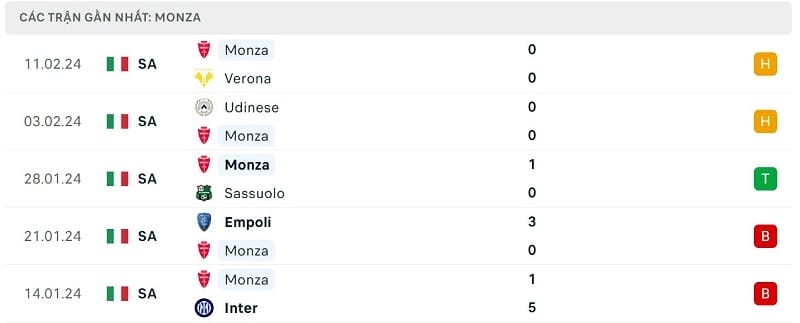 Cụ thể, Monza hiện có tổng cộng 30 điểm (7 thắng, 9 hòa và 8 thất bại), qua đó đứng thứ 11 trên bảng xếp hạng. Đội chủ sân Stadio Brianteo đang hơn nhóm xuống hạng đến 11 điểm và đó là khoảng cách rất an toàn.