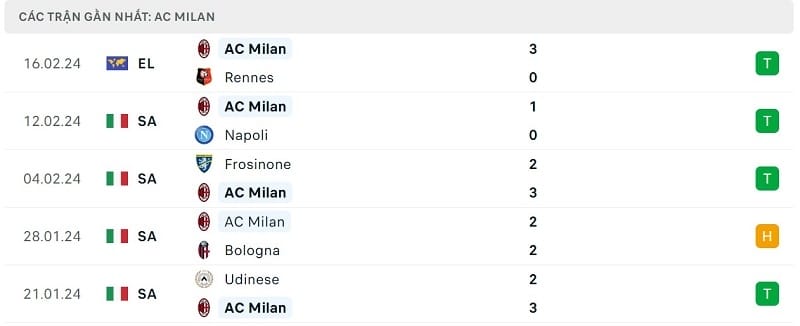 AC Milan đang có phong độ cao
