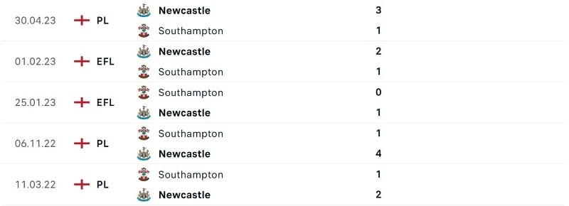 Kết quả đối đầu các trận gần đây nhất của Newcastle vs Southampton