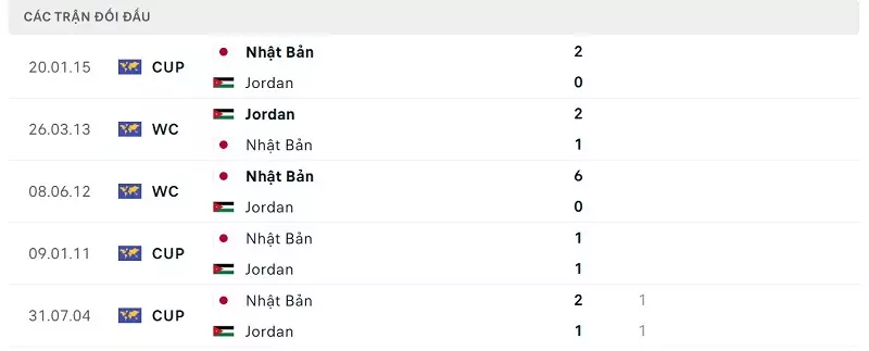 Thành tích đối đầu Nhật Bản vs Jordan: