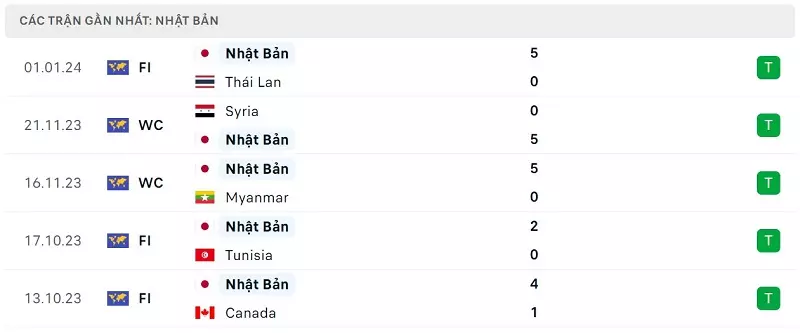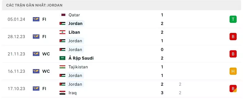 Phong độ gần đây Nhật Bản vs Jordan: