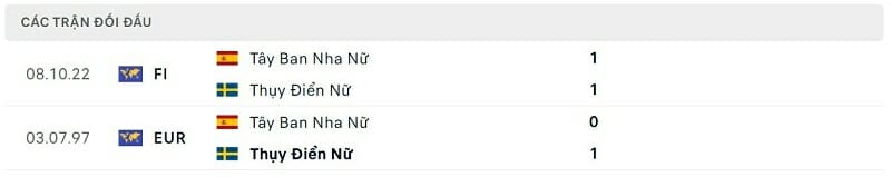 Thông tin đối đầu nữ Tây Ban Nha vs nữ Thụy Điển