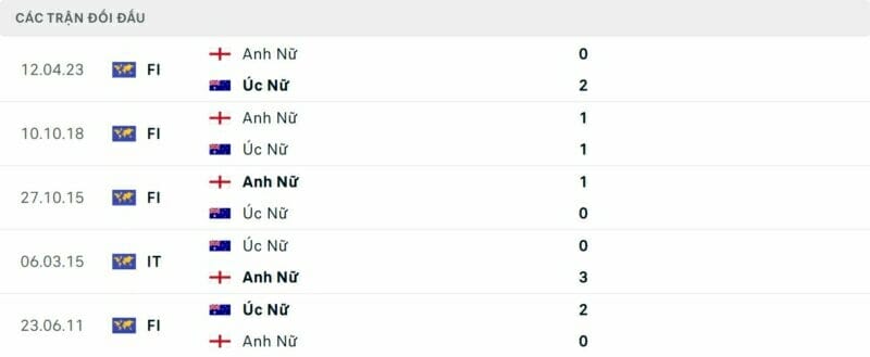 Thông tin đối đầu nữ Úc vs nữ Anh