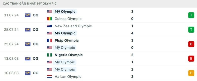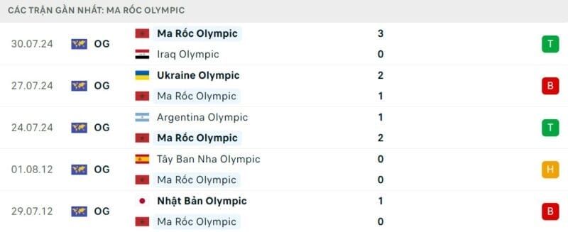 Kết quả đối đầu các trận gần đây nhất của Olympic Ma Rốc vs Olympic Mỹ