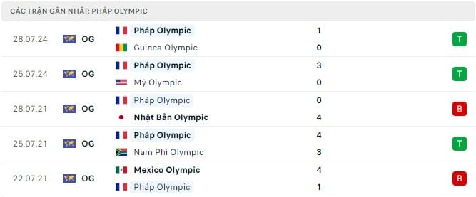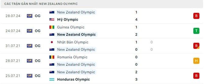 Kết quả các cuộc đối đầu gần đây giữa Olympic New Zealand vs Olympic Pháp