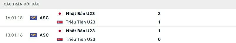Thành tích đối đầu Olympic Nhật Bản và Olympic Triều Tiên: