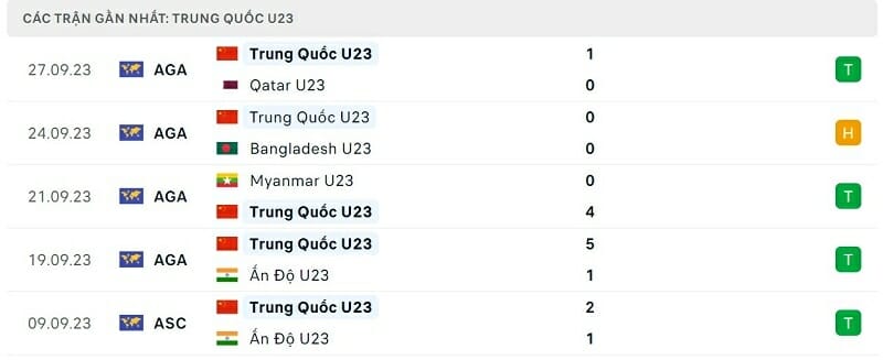 Phong độ gần đây Olympic Trung Quốc vs Olympic Hàn Quốc: