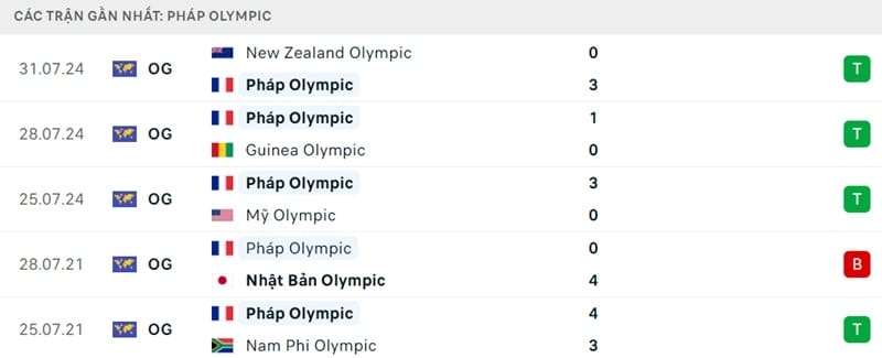 Kết quả đối đầu các trận gần đây nhất của Olympic Pháp vs Olympic Argentina