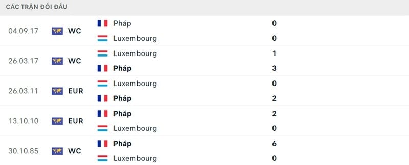 Lịch sử chỉ ra, 16/18 trận gần nhất gặp Pháp, Luxembourg đều thua. Một kết quả không gây bất ngờ. 1/2 trận không thua còn lại diễn ra tại vòng loại World Cup 2018 khi Luxembourg cầm hòa Les Bleus với tỷ số 0-0. Kết quả đó giúp họ cắt đứt chuỗi 14 thất bại liên tiếp mỗi lần gặp Pháp. Đoàn quân của ông Luc Holtz khó mơ về việc quật ngã một ứng cử viên cho chức vô địch EURO 2024.