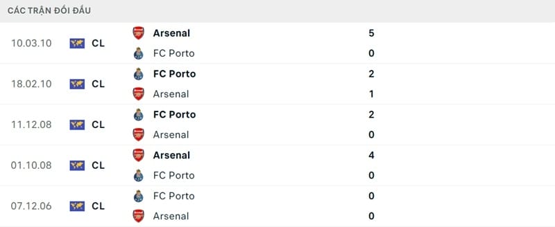 Một yếu tố khác ủng hộ Pháo thủ bởi cả hai từng gặp nhau ở vòng 16 đội trong mùa giải 2009/10. Họ đã giành được tấm vé đi tiếp nhờ chiến thắng chung cuộc 6-2 trước Porto, dù lúc bấy giờ, đội chủ sân Emirates thua 1-2 ở Dragao.