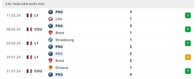 Ở trận đấu gần nhất, PSG đã dễ dàng giành chiến thắng trước Lille với tỷ số 3-1. Kết quả này giúp đội chủ sân Parc des Princes xây chắc ngôi đầu Ligue 1 2023/24 với tổng cộng 50 điểm, hơn đội xếp sau là Nice đến 11 điểm.