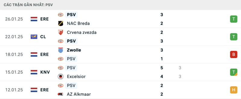 Phong độ PSV
