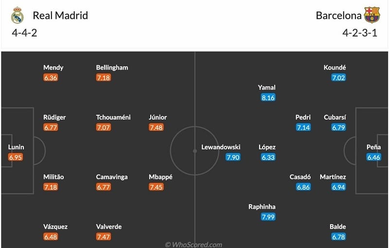 Đội hình ra sân của Real Madrid vs Barcelona trong trận La Liga ngày 27/10