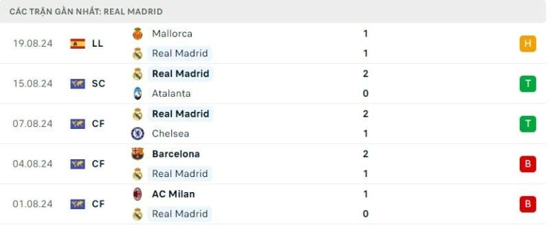 Phong độ Real Madrid