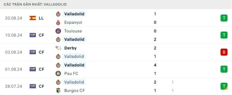 Phong độ Valladolid