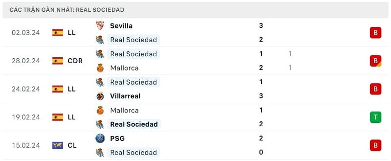 Quan trọng hơn, thất bại trước Sevilla khiến chuỗi thành tích đáng thất vọng của đội chủ sân Anoeta ngày càng dài thêm. Real Sociedad hiện đang có chuỗi 3 thất bại liên tiếp trên mọi đấu trường, lần lượt trước Villarreal, Mallorca và mới nhất chính là Sevilla. Tính trong 5 trận gần nhất, thầy trò HLV Imanol Alguacil chỉ giành được 1 chiến thắng và phải nhận đến 4 trận thua.