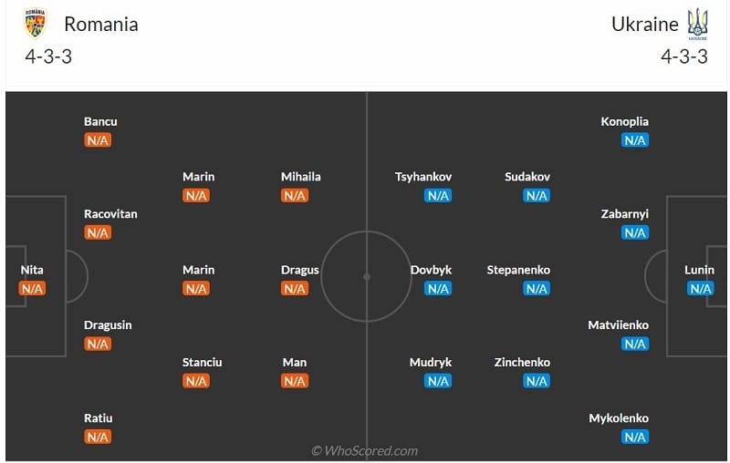 Đội hình ra sân của Romania vs Ukraine trong trận Euro ngày 17/06
