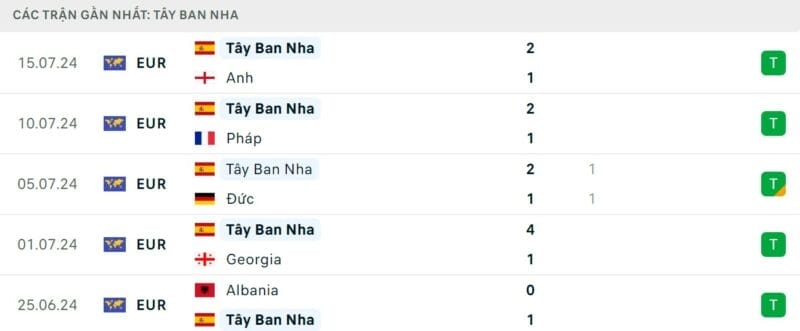 Tây Ban Nha đã đăng qua Euro với chuỗi thành tích toàn thắng nếu tính cả hiệp phụ, và cũng chỉ hòa 1 nếu tính 90 phút.