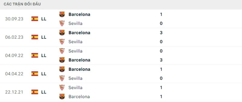 CLB Barcelona cho thấy sự áp đảo ở thành tích đối đầu trước Sevilla. Thống kê 20 trận đụng độ vừa qua cho thấy, đội bóng xứ Catalan đã thắng lợi 14 lần, hòa 4 và chỉ để thua Sevilla 2 trận. Đoàn quân của huấn luyện viên Xavi đã toàn thắng cả 4 lần gặp nhau gần nhất. Họ cũng thắng 2, hòa 1 trong 3 trận làm khách tại Ramón Sánchez Pizjuan vừa qua.