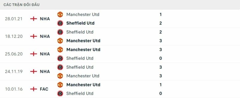 Thành tích đối đầu Sheffield United vs MU