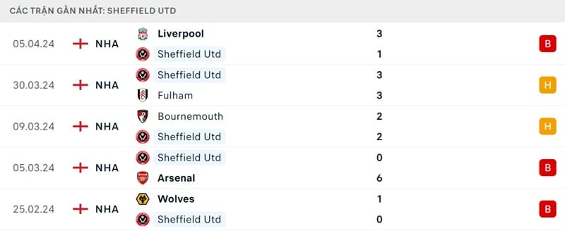 Sheffield United tiếp tục trượt dốc sau thất bại trước Liverpool. Họ đang đứng cuối bảng, kém vị trí thứ 17 của Nottingham Forest 10 điểm trong bối cảnh CLB còn 8 trận tại Premier League. Về mặt toán học, thầy trò Chris Wilder vẫn còn cơ hội trụ hạng, nhưng khả năng đó ít xảy ra.