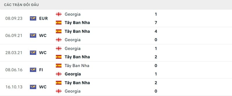 Thông tin đối đầu Tây Ban Nha vs Georgia