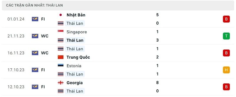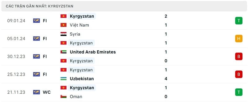 Phong độ gần đây Thái Lan vs Kyrgyzstan:
