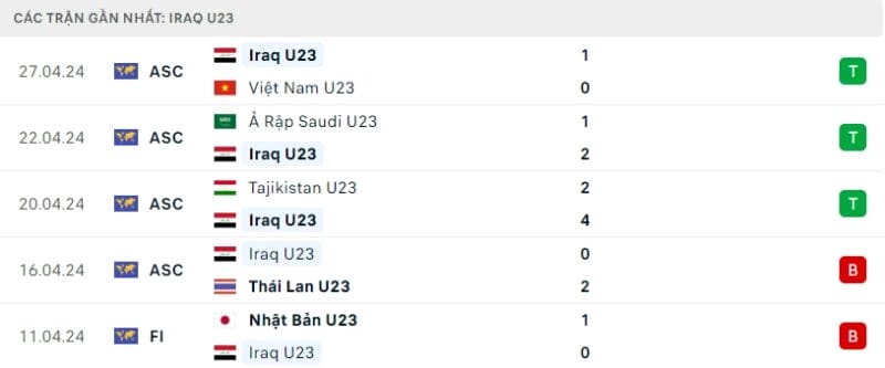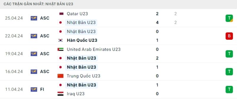 Phong độ gần đây U23 Nhật Bản vs U23 Iraq