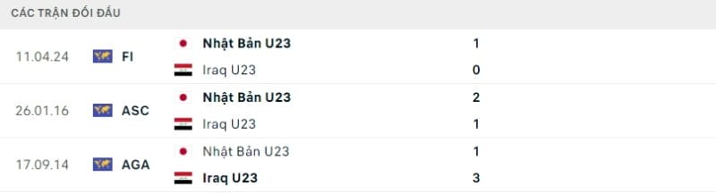 Thành tích đối đầu U23 Nhật Bản vs U23 Iraq