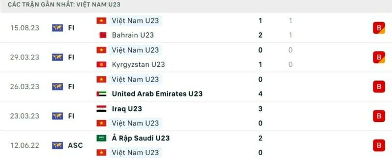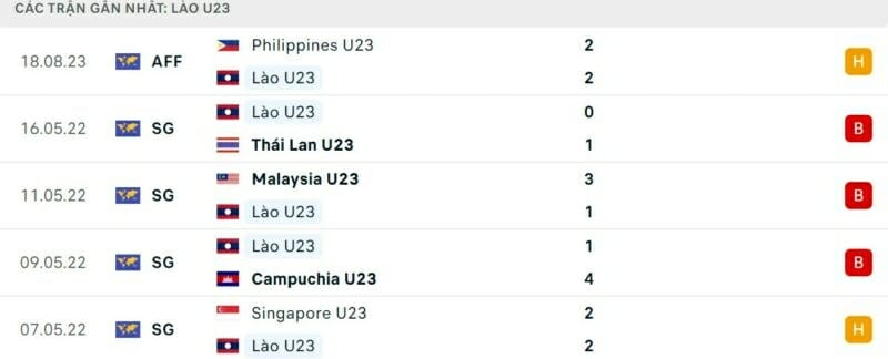 Phong độ gần đây U23 Việt Nam vs U23 Lào: