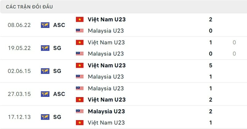 Thông tin đối đầu U23 Việt Nam vs U23 Malaysia
